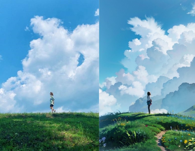 在H5頁(yè)面中,除了電子版邀請(qǐng)函,致敬未知還展示了一款名為”未知圖境”的自研小工具。它能夠以圖生圖,快速將用戶的照片風(fēng)格化,實(shí)現(xiàn)3D風(fēng)景圖,包括插畫、油畫、漫畫效果。有部分媒體和公眾猜測(cè),這是否是新品功能的一小部分,暗示了新產(chǎn)品的影像功能與此相關(guān)?
