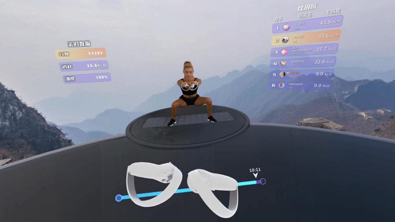 相對來說,帕梅拉的10分鐘VR健身課程對我而言則完全可以接受,雖然同樣包含深蹲等大幅度動作,但其持續(xù)練習的強度對于我脆弱的膝蓋依然屬于能夠承受的范圍,由此我們也可以看出帕梅拉在設計課程時充分考慮到一些大體重用戶的痛點(比如無法長期連續(xù)磨損膝蓋),頂流健身博主的實力果然名不虛傳!