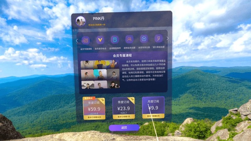 這里還需要說明一點,除了第一節(jié)的免費課程,目前展示的帕梅拉另外幾節(jié)課程全部是付費訂閱內(nèi)容。在查看「超燃一刻」的訂閱服務時,我看到這款應用提供了月度、季度和年度訂閱的付費模式。平心而論,59.9元的年度訂閱服務實在是物超所值,我認為這個價格對于絕大部分VR用戶來說完全沒有壓力。而在內(nèi)容質(zhì)量方面,前面已經(jīng)提到,即使像我這種“膝蓋中過箭”的用戶都可以順利完成帕梅拉的課程,相信絕大部分VR用戶同樣能夠輕松完成訓練。