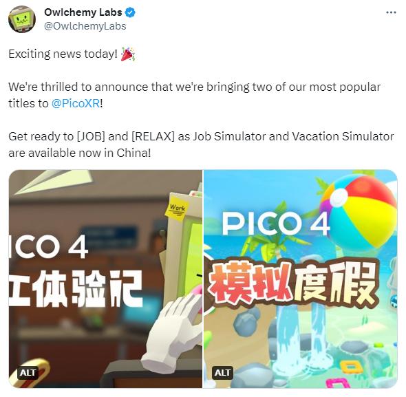 雖然Owlchemy推文特別提到推出了PICO版本,但Owlchemy首席執(zhí)行官Andrew Eiche證實(shí),這兩款游戲也可以在非中國(guó)PICO商店購(gòu)買(mǎi)。