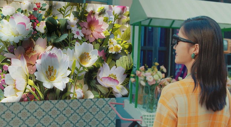 從咖啡店出門,這副看似普通的眼鏡在強(qiáng)光下又變成了墨鏡的模樣。小張根據(jù)墨鏡中的步行導(dǎo)航準(zhǔn)確無誤地前往目的地中餐廳。在餐廳進(jìn)門之前,小張還特意仔細(xì)查看了墨鏡中顯示的餐廳評價(jià)。整個(gè)過程如同科幻電影中的場景一般,讓他們仿佛置身于神奇的數(shù)字世界。