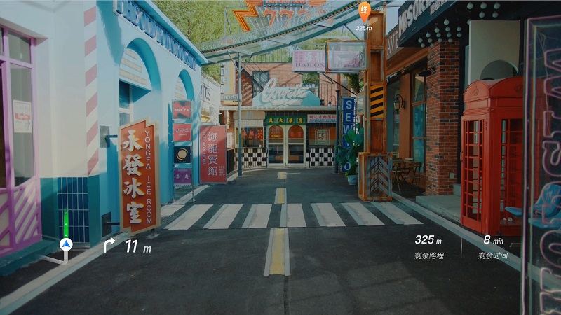 在車內(nèi)專用空間定位模塊與邊充邊用模塊的加持下,ARknovv A1還能夠?yàn)橛脩籼峁〢R-HUD駕駛導(dǎo)航。這套系統(tǒng)名為ARknovv A1 HUD,能夠?qū)?dǎo)航信息以及手機(jī)來電、短信等提示信息顯示,以3DoF SLAM算法固定在用戶前方8米開外視線偏下的位置,既不影響后視鏡的觀察也不遮擋駕駛視線,同時(shí)有效的避免了視線焦點(diǎn)切換帶來的眼睛疲勞問題。