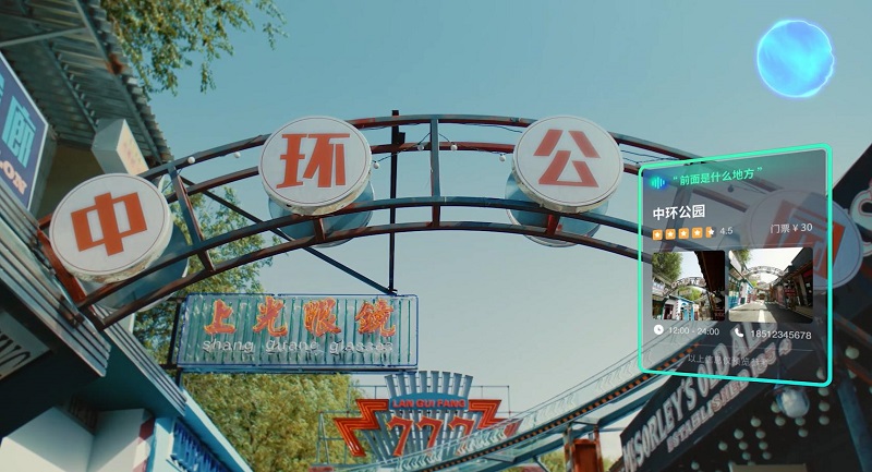 某個(gè)夏日午后,小張和朋友滿懷期待地約好在北京City Walk見面。他們從雍和宮出發(fā),戴上一款時(shí)尚的墨鏡,一切變得有趣又神奇。這副墨鏡不僅準(zhǔn)確無誤地引領(lǐng)著他們進(jìn)入了胡同里隱藏已久的咖啡店,更在室內(nèi)自如地變成一款普通眼鏡,隨手輕輕一點(diǎn)還拍出了令人驚嘆的3D照片。