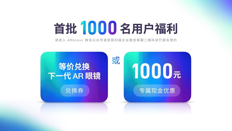 福利一:產(chǎn)品兌換券,大家可以在未來等價(jià)兌換任意一款A(yù)RKnovv推出的AR眼鏡;