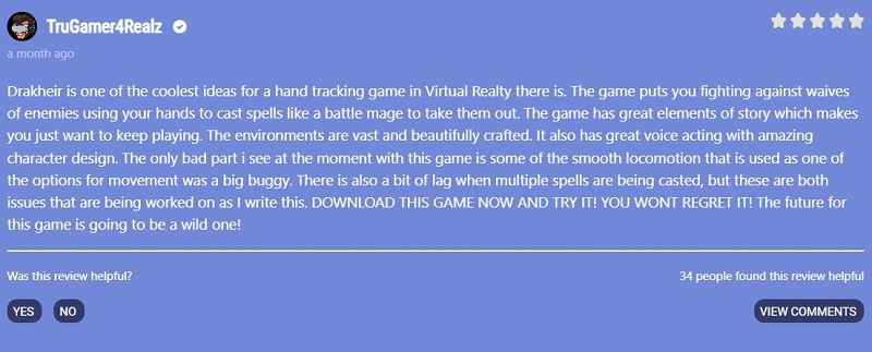 他欣慰地告訴我們,自己幾乎每天都會(huì)到「Drakheir」的Sidequest商店頁面以及官方推特查看玩家們的評價(jià)和反饋,玩家們經(jīng)常給他們留下許多暖心的留言和中肯的建議,其中還有很多VR博主自發(fā)地制作視頻來幫他們進(jìn)行宣傳。這一切都使他認(rèn)為自己和團(tuán)隊(duì)成員們所付出的努力是值得的,為玩家們提供超越語言的樂趣,YongHo工作室心向往之。