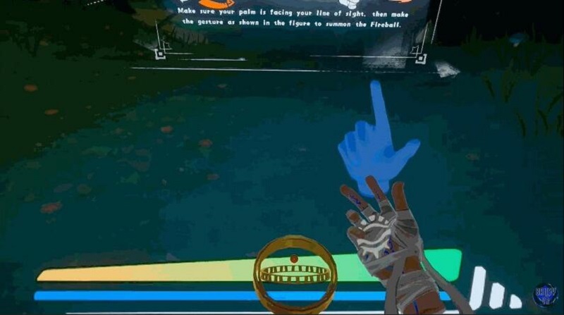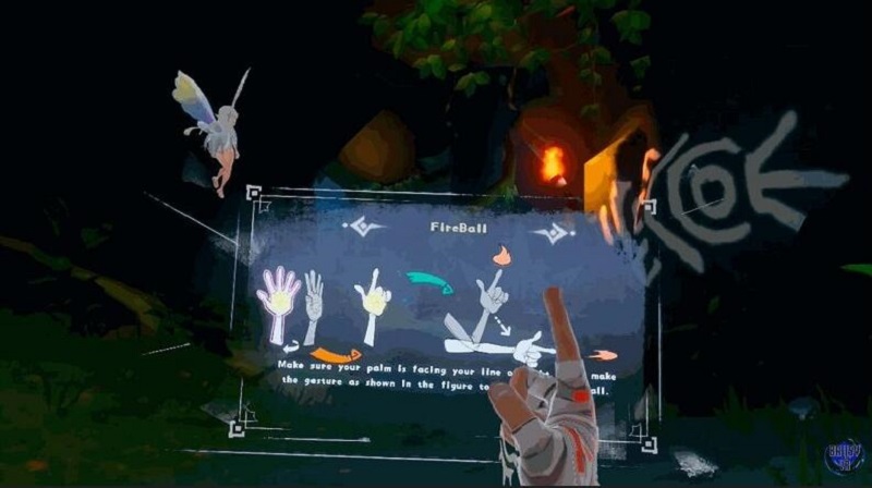 除了精美的游戲畫面以及獨(dú)具特色的游戲內(nèi)容以外,游戲依靠“裸手”手勢互動(dòng)的玩法也同樣引人注目。在游戲中,玩家可以通過劇情的推進(jìn)而習(xí)得各種強(qiáng)大的魔法,不同的魔法對應(yīng)著不同的手勢,游戲內(nèi)的所有操作都無需外部設(shè)備,僅靠玩家的雙手便可實(shí)現(xiàn)。