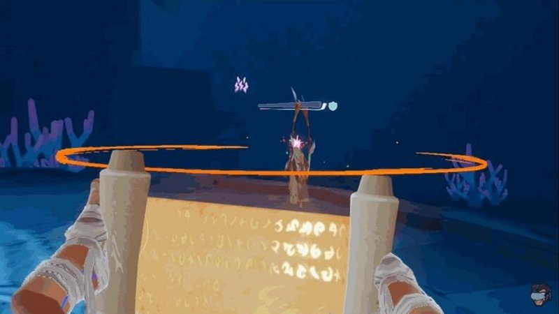 「Drakheir」在玩家的雙手手掌上分別加了一只眼睛圖案的光標(biāo),當(dāng)玩家想要施放魔法時(shí),則需要做出對應(yīng)的手勢并將手掌舉起,將眼睛光標(biāo)與自己的視線持平,隨后玩家的手上就會(huì)出現(xiàn)不同魔法的動(dòng)畫,接下來就可以隨心所欲地施放魔法了。在游戲的設(shè)定中,玩家作為一名魔法師,他的全部魔法能量都匯集在雙手,因而在每次施放魔法前注視自己掌心的“魔法之眼”的設(shè)計(jì)也就沒有任何違和感了。