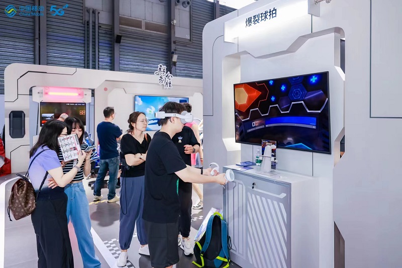 在中國(guó)移動(dòng)咪咕的5G+全體育展區(qū),有玩家正頭戴NOLO SONIC2,通過(guò)揮動(dòng)手中的手柄將游戲內(nèi)球擊向四周弧形墻壁,球在墻壁上飛速滾動(dòng)的同時(shí)掃平目標(biāo)障礙點(diǎn),類似“打磚塊”。玩家大幅度的走位和電視大屏的刺激投屏的畫(huà)面引發(fā)了現(xiàn)場(chǎng)不少人圍觀。據(jù)悉,玩家正在體驗(yàn)的是中國(guó)移動(dòng)咪咕獨(dú)家定制版壁球游戲《Racket:Nx爆裂球拍》,將未來(lái)科技和運(yùn)動(dòng)元素有機(jī)結(jié)合,即將在移動(dòng)云VR PORT獨(dú)家上線。