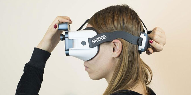 不是用額外攝像頭改造已有頭顯,Bridge設備擁有自己的結構傳感器,就放在頭顯頂上。它還有可調節(jié)鏡片,能將iPhone攝像頭視場角擴大到最高120度。這臺頭顯不僅想用位置追蹤增強移動VR性能,還想提供MR體驗。