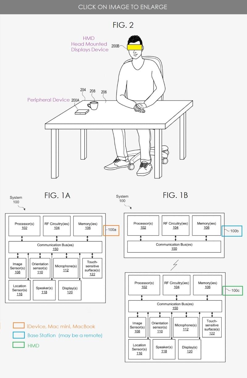 蘋果專利圖1A-1B描繪了用于各種CGR技術(shù)的示例性系統(tǒng);如圖2示出了包括頭戴式顯示設備和用于實現(xiàn)遠程觸摸檢測的外圍設備系統(tǒng)的示例。