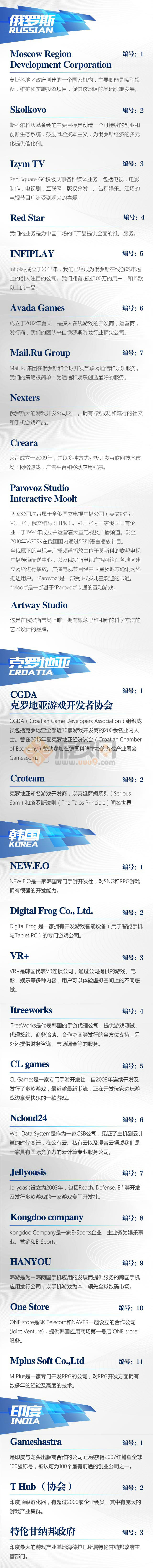 其中,來自俄羅斯的MoscowRegion DevelopmentCorporation是莫斯科地區(qū)政府創(chuàng)建的一個國家機構(gòu),主要促進該地區(qū)的基礎(chǔ)設(shè)施發(fā)展。CGDA組織成員包括克羅地亞全部近30家游戲開發(fā)商的200余名業(yè)內(nèi)人士。曾在2015年受克羅地亞經(jīng)濟議會(CroatianChamberofEconomy)贊助參加在德國科隆舉辦的游戲產(chǎn)業(yè)展會Gamescom。而“THub”是印度最大的科技創(chuàng)業(yè)中心,位于印度IT產(chǎn)業(yè)集聚的海德拉巴新城區(qū),由特倫甘納邦Telangana政府主導的公私合營項目,為創(chuàng)業(yè)者們提供資金、辦公場所、創(chuàng)業(yè)指導和機遇等方面的支持。特倫甘納邦政府,也是印度最大的游戲產(chǎn)業(yè)基地海德拉巴所屬特倫甘納邦政府主管部門。本次游戲商務(wù)大會一對一專場,上述單位都將派出要員出席,陣容空前,不容錯過。