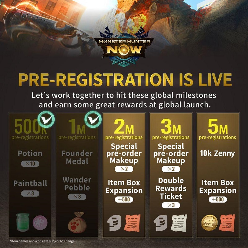 「怪物獵人Now」將于9月登陸iOS和Android平臺,這款A(yù)R游戲在正式發(fā)布之前啟動了預(yù)注冊活動。每達到一個重大里程碑,游戲都會提供額外的獎勵,如果游戲預(yù)注冊達到200萬、300萬和500萬,還會有進一步的獎勵。