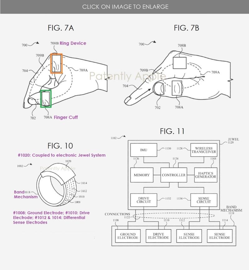 美國專利商標局公布了蘋果一項專利申請,該專利申請涉及使用單個和多個智能戒指以控制用戶界面。Apple Vision Pro基于眼動追蹤和攝像頭以追蹤定位用戶空中手勢來操控VisionOS,就像鼠標對Mac的作用。該智能戒指專利有一個明確的替代目的,即能與Apple TV盒子、Mac等其他設(shè)備兼容使用。
