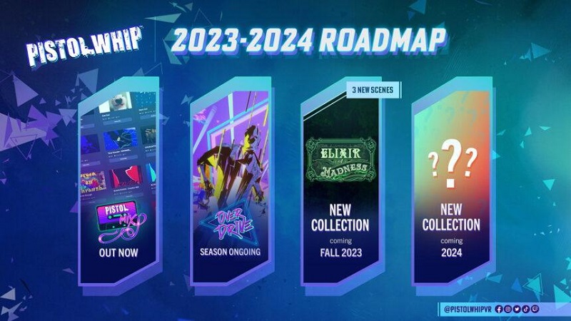 此外,Cloudhead Games還公布了「Pistol Whip」到2024年的版本內(nèi)容路線圖,如下所示: