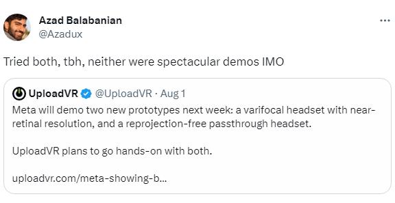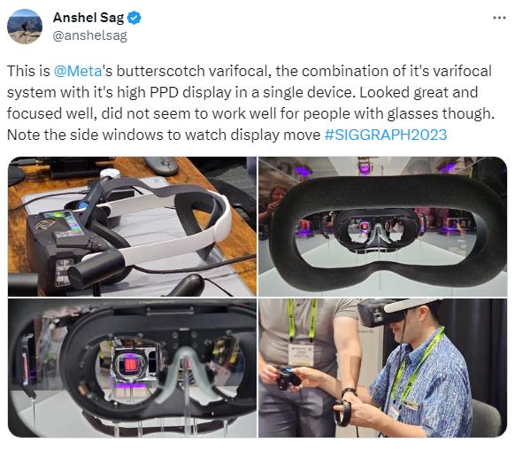 XR分析師Anshel Sag在談到“Butterscotch Varifocal”時表示,它“看起來很棒,對焦也很好”,但似乎不太適合戴眼鏡的近視人群。