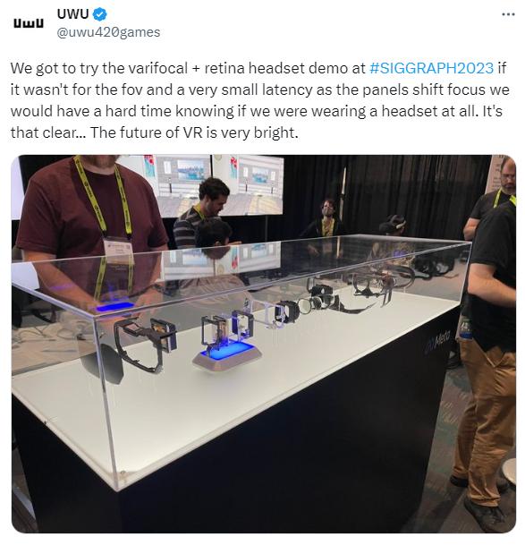 VR工作室UWU對此感到驚喜,“……如果不是因為視場角以及面板轉(zhuǎn)移焦點時的非常小的延遲,我甚至難以判斷是否佩戴著頭顯……”