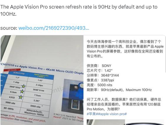 Twitter爆料者DuanRui表示,Vision Pro刷新率默認(rèn)為90Hz,最高可達(dá)100Hz。這表明Vision Pro支持可變刷新率,并且可以根據(jù)顯示的內(nèi)容調(diào)整刷新率。作為背景,基本款iPhone刷新率為60Hz,而iPhone 13 Pro和iPhone 14 Pro最大刷新率為120Hz。
