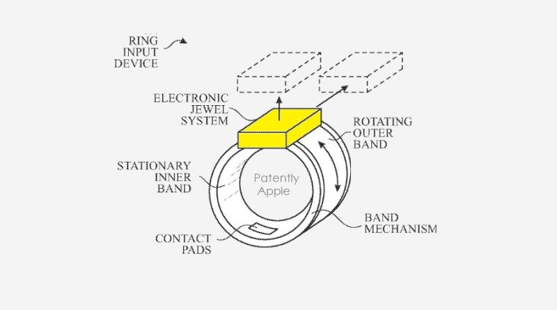 蘋果專利涵蓋了環(huán)形輸入設(shè)備,更具體說(shuō),涉及環(huán)形輸入設(shè)備內(nèi)的壓敏輸入機(jī)制,該機(jī)制可檢測(cè)啟動(dòng)操作的壓力;由于指環(huán)通常很小并且經(jīng)常佩戴,因此電子指環(huán)可用作不顯眼的通信設(shè)備,其可容易與能接收通信的其他設(shè)備進(jìn)行無(wú)線通信。