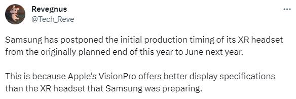 Apple Vision Pro擁有極具未來感的設(shè)計,以及更好的硬件和顯示規(guī)格,這促使三星推遲了AR頭顯的推出。Revegnus在推特稱,三星AR頭顯可能會在2024年6月發(fā)布。鑒于AR頭顯市場正處于起步階段,需要數(shù)年時間才能成長,三星發(fā)布第一代產(chǎn)品也可能遇到生產(chǎn)問題。