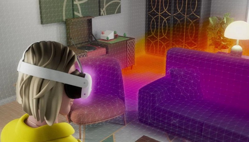 今年3月,The Verge報道的Meta產(chǎn)品路線圖提到Quest 3具備名為“智能監(jiān)護人”的功能?;谠摴δ?,VR用戶可以看到附近家具的輪廓,并且在接近真實墻壁時意識到碰撞危險。與傳統(tǒng)Guardian功能相比,這使得用戶可以利用更多的VR空間。