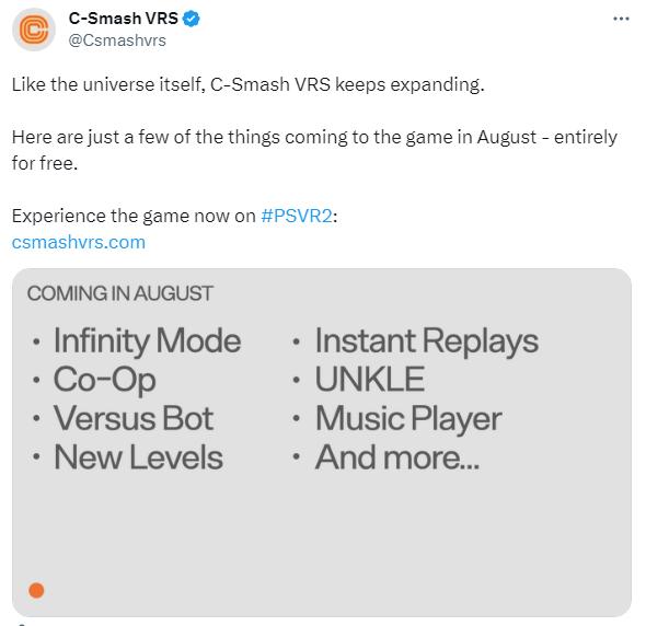「C-Smash VRS」PlayStation博客介紹了全新更新亮點,其中包括“無限模式”,“這是一個動態(tài)生成的競技場,并隨著音樂不斷變化?!背酥?,新更新還增加了新關(guān)卡、音樂播放器、即時回放、UNKLE玩法等更多內(nèi)容。