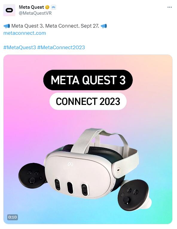 Meta宣布Meta Connect 2023將于9月27日召開,Meta Quest 3很可能會發(fā)布。