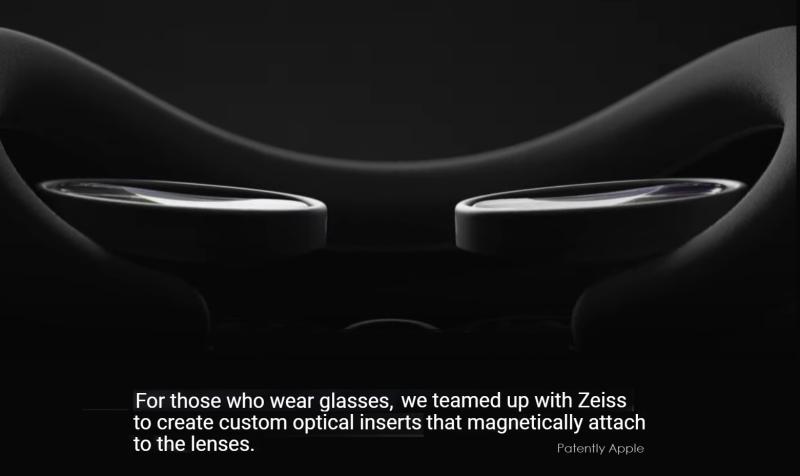 Apple Vision Pro圖像顯示器安裝在光學(xué)模塊中,顯示器上的圖像可以通過(guò)鏡頭觀看。蘋果6月透露,對(duì)于近視用戶,將能使用蔡司鏡片以體驗(yàn)Vision Pro。
