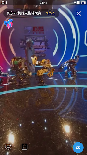 在京東平臺(tái)方面,系統(tǒng)默認(rèn)采用了橫屏顯示方式,不過不支持用戶用手指滑動(dòng)屏幕來改變觀看角度,用戶只能通過轉(zhuǎn)動(dòng)手機(jī)來改變觀看角度,這一點(diǎn)還是有點(diǎn)麻煩。在之前的版本迭代中,微鯨VR的移動(dòng)APP已經(jīng)實(shí)現(xiàn)了這一功能,在觀看便攜性上實(shí)現(xiàn)了一個(gè)較大的提升。同樣,我在切換到京東移動(dòng)APP進(jìn)行觀看時(shí),也沒有感覺到一點(diǎn)卡頓,看來現(xiàn)在使用10M、20M光纖的家庭完全可以觀看高清的VR直播。