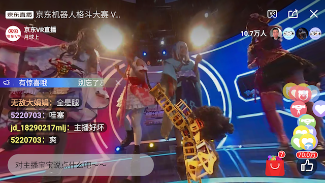 剛剛過去的周末,無論是京東的用戶,還是微鯨VR的粉絲,都有可能參與了一場(chǎng)非常有趣的VR直播,那就是12月17日晚由京東VR直播頻道啟動(dòng)的、微鯨VR負(fù)責(zé)直播的京東機(jī)器人格斗大賽。本場(chǎng)直播也是京東VR直播頻道的首秀,用戶可以在京東移動(dòng)APP和微鯨VR移動(dòng)APP上觀看到這場(chǎng)大賽的VR直播。作為一個(gè)機(jī)器人和科幻愛好者以及微鯨VR的忠實(shí)用戶,我自然也觀看了這場(chǎng)直播,到底這場(chǎng)直播有哪些有趣之處,下面聽我慢慢道來。