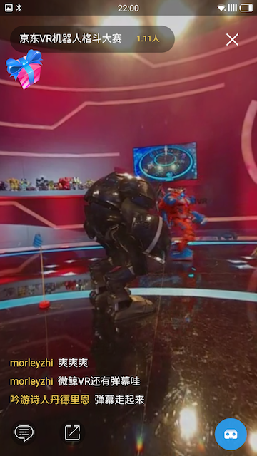 在微鯨VR的直播頁(yè)面中,我也看到了彩蛋抽獎(jiǎng)的功能,如上圖畫面上方的禮包圖標(biāo),用戶點(diǎn)擊該圖標(biāo)即可參與抽獎(jiǎng),不過很可惜我并沒有抽到什么獎(jiǎng)。在之前采訪微鯨VR移動(dòng)APP產(chǎn)品負(fù)責(zé)人Leon時(shí),我了解到APP最新版本已經(jīng)加入了這一功能,相信彈幕和抽獎(jiǎng)可以在未來極大增強(qiáng)用戶的互動(dòng),提升用戶的活躍度,看來讓大家玩起來才是硬道理。