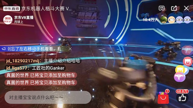 除了這些互動(dòng),京東還在直播頁(yè)面里提供了購(gòu)物功能。用戶可以直接在直播頁(yè)面選擇不同的VR眼鏡添加至購(gòu)物車,而我在觀看直播時(shí)發(fā)現(xiàn)確實(shí)有用戶進(jìn)行了購(gòu)物操作,看來通過優(yōu)質(zhì)的內(nèi)容(視頻或直播)進(jìn)行購(gòu)物引流也并非不可能??吹竭@里我再次腦洞大開,如果以后我們搞一場(chǎng)四驅(qū)車比賽的VR直播,是不是也可以直接把四驅(qū)車玩具的購(gòu)買鏈接放到直播頁(yè)面里呢?以此類推的想象空間實(shí)在是巨大。