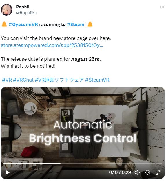 「OyasumiVR–VR Sleeping Utilities」原計(jì)劃8月25日登陸Steam, 現(xiàn)已登陸Steam平臺(tái),支持免費(fèi)下載。