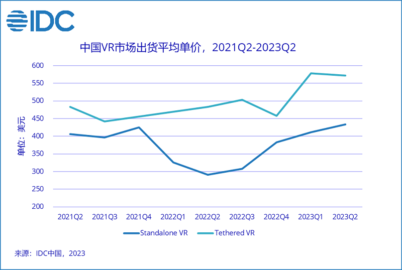 由于頭部廠商主打型號發(fā)布時間已經(jīng)相對較長,促銷活度力度較去年明顯降低,二季度消費級型號產(chǎn)品在618期間表現(xiàn)不及預期。自2021年底,中國市場的VR一體機產(chǎn)品進入了較為激烈的價格競爭階段,廠商依靠補貼策略進行大規(guī)模出貨的嘗試持續(xù)了多個季度。自2022年第三季度末Pico 4發(fā)布以來,產(chǎn)品平均單價開始出現(xiàn)回升,伴隨著中高端VR型號新品的發(fā)布以及廠商營銷節(jié)奏調(diào)整,“價格戰(zhàn)”已趨近結(jié)束。內(nèi)容商店應用數(shù)量、顯示參數(shù)、重量等指標在未來將成為產(chǎn)品間的重要區(qū)分,“價格戰(zhàn)”開始轉(zhuǎn)向“產(chǎn)品戰(zhàn)”。