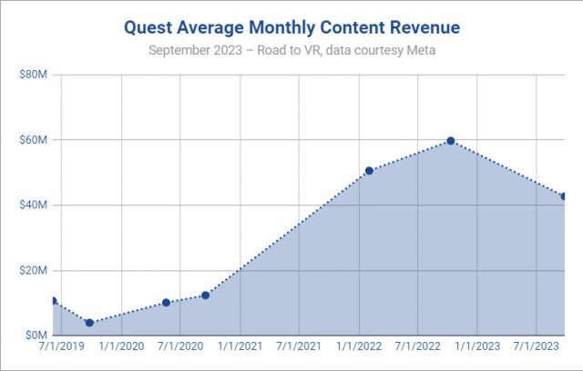 從今天的公告來看,自Quest 2于2020年推出以來,內(nèi)容銷售的降溫速度也一目了然。Meta去年10月在Connect 2022上宣布,Quest Store收入已突破15億美元,而這意味著2019年推出的Quest 1在過去12個(gè)月內(nèi)僅創(chuàng)造了5億美元的收入。
