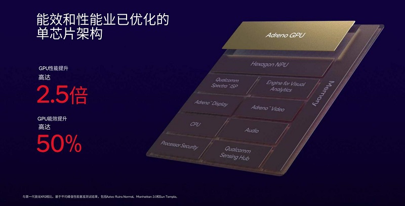 第二代驍龍XR2的整體架構(gòu)針對(duì)性能和能效進(jìn)行了大幅度優(yōu)化,可以在無需外接電池組的情況下為頂級(jí)的一體機(jī)頭顯設(shè)備提供出色的性能保障。