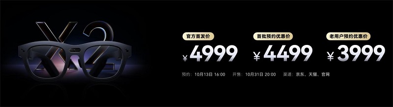 價格方面,雷鳥X2定價4999元,首發(fā)預(yù)定到手價格4499元,目前已上線京東、天貓官方旗艦店、雷鳥官網(wǎng)預(yù)售。
