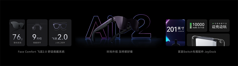 此外,會上還發(fā)布了索尼最新一代MicroOLED 屏幕的雷鳥Air 2,帶來6米距離等效201英寸的高清巨幕,最大入眼亮600nits,支持 60/120Hz 兩檔刷新率,整機重量較前代產(chǎn)品降低12.6%,畫面更清晰,佩戴更舒適。隨雷鳥Air 2發(fā)布的JoyDock是行業(yè)首款Switch專屬XR眼鏡配件,無需繁瑣的接線,即插即用,可為Switch供電、支持邊充邊玩,提供更震撼更沉浸的Switch隨身游戲巨幕。