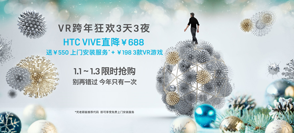 另在Vive官網(wǎng),消費者憑Vive老顧客推薦代碼更可享受價值550元的免費上門安裝服務(wù)!欲了解更多活動詳情,請前往Vive博客文章:https://blog.vive.com/cn/2016/12/27/vive-new-year-sale