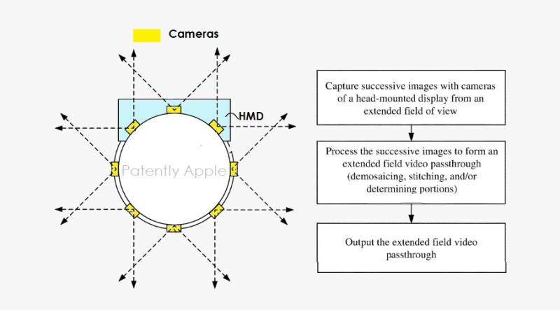 蘋(píng)果專(zhuān)利發(fā)明涉及未來(lái)具有攝像頭的頭戴式顯示器,以觀察周?chē)h(huán)境。具體來(lái)說(shuō),攝像頭各自耦合到顯示單元或頭部支架,這些攝像頭具有水平重疊的攝像頭視場(chǎng)角,以協(xié)同為頭戴式顯示器提供360度水平的頭戴式顯示器視場(chǎng)。