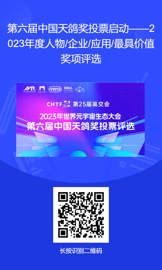 作為第25屆高交會·2023世界元宇宙生態(tài)大會的重要組成部分,第六屆中國天鴿獎將評選出四大元宇宙獎項:“人物”、“應用”、“企業(yè)”、“最具價值”四大類;評選活動采取自薦或推薦等方式,以網(wǎng)上投票和專家評審等形式公平、公正、權(quán)威評選出相關(guān)獎項,并將于2023年11月17日舉行頒獎盛典。