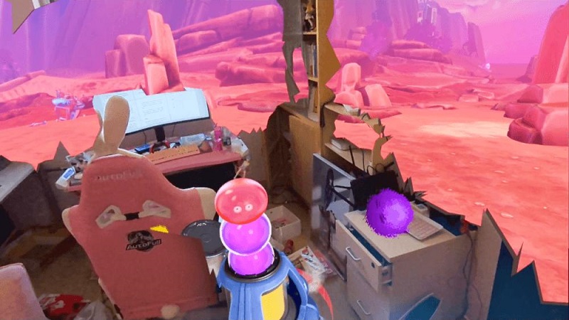 在這款游戲中,我的房間變成了一個星際游樂場。一個小型飛行器降落在房間之中,四周有無數(shù)顏色各異的毛球怪飛來飛去,而我的任務(wù)就是用手槍擊中這些可愛的小怪物,被擊中的怪物會被飛行器收集,而三個以上的顏色一致的怪物就會產(chǎn)生“消消樂”的效果。在游戲過程中,房間墻壁會被手槍和怪物打破,然后我就看到了外面更加空曠和壯麗的異星風景,這種虛實結(jié)合的體驗對于我這樣的VR老玩家來說依然充滿了沖擊力和新鮮感,此時我終于有點明白小扎所說的“混合現(xiàn)實頭顯”到底是什么意思了。