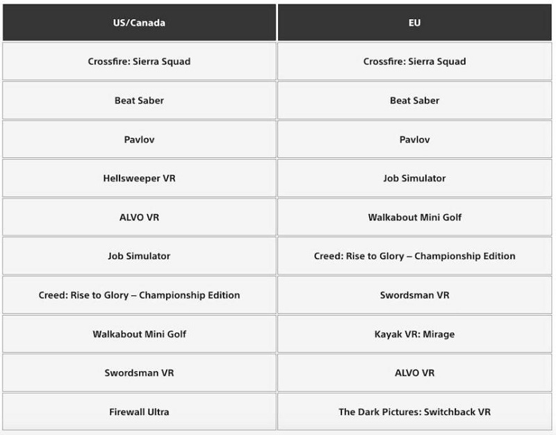 其余新游均缺席,取而代之的是「Job Simulator」、「Walkabout Mini Golf」和「Creed: Rise to Glory」等老游戲。