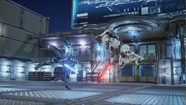 相對于《像素大作戰(zhàn)》的卡通風格,《Reborn》絕對是一款硬核的VR動作游戲,目前運行在HTC Vive平臺上。戴上VR頭顯,我化身為一名武士,游戲中雙手能夠選擇的武器有多種,而我自然是選擇了兩把光劍。當對方機器人發(fā)射的激光被我的光劍反彈回去之后,那種感覺很爽,而當我用光劍砍中對方機器人的時候,我驚奇的發(fā)現(xiàn)對方被我切割開了。劉博說切割系統(tǒng)是《Reborn》的一大亮點,通過光劍玩家可以將敵方物體進行切割,目前這種技術在國內(nèi)還沒有其他公司能夠做出來。除了切割,在格擋過程中我能夠感覺到手柄的力反饋,一般來說,手柄的力反饋是一些主機游戲才具備的高級功能,其效果就是增加游戲的手感,而對于動作游戲來說手感是至關重要的。最后值得一提的就是《Reborn》的移動方式,由傳統(tǒng)移動方式造成的眩暈感一直是VR游戲的一大難題,有些游戲采取了瞬移的方式,但對于游戲的體驗確實有所影響,而神武互動的團隊采用了一種既非傳統(tǒng)方式也非瞬移的移動方式,通過這種方式,玩家既不會產(chǎn)生瞬移帶來的違和感,也不會眩暈了。對于這種移動方式我感覺很新奇,之前沒見過這種方式,同時在舒適感方面確實不錯,移動很順暢而且不暈。關于其具體方式我這里賣個關子,感興趣的朋友等到《Reborn》正式推出的時候就能知道了。