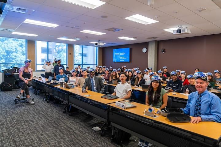 為此,UCI Paul Merage將舉辦虛擬剪彩儀式,以慶祝虛擬大學(xué)的啟動(dòng)?;顒?dòng)結(jié)束后,2023年秋季“走進(jìn)元宇宙”課程班的學(xué)生將在Merage虛擬大學(xué)的互動(dòng)演示中試行演示內(nèi)容和協(xié)作完成作業(yè)。這門開創(chuàng)性課程是加州大學(xué)首個(gè)此類課程,40名學(xué)生佩戴Meta Quest 2頭顯,并在沉浸式環(huán)境中學(xué)習(xí)。