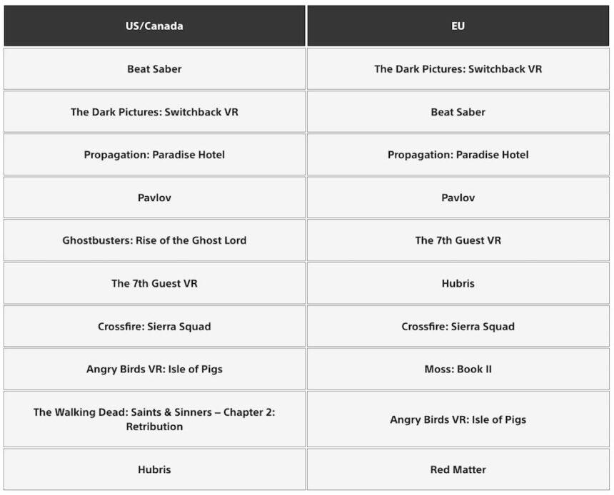 排行榜顯示,驚悚過山車射擊游戲「Switchback VR」在北美地區(qū)排名第二、歐洲地區(qū)排名第一。這款獨(dú)占游戲于3月發(fā)布,但評價令人失望,好在Supermassive Games虛心接受了批評,并推出了一系列更新內(nèi)容,改進(jìn)了游戲畫質(zhì)和玩法,添加了“Horde”模式。經(jīng)過改正,「Switchback VR」重新獲得了PS VR2玩家的青睞。