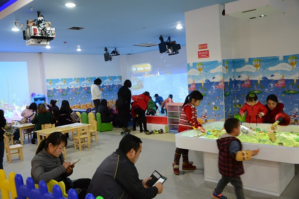 除了超級隊長凱樂園,互動投影也是凱里店重要的兒童娛樂區(qū)?;油队安捎肁R影像辨識、虛擬成像和3D多媒體互動系統(tǒng)、壓感傳感等多項技術,將傳統(tǒng)單一的蹦床、繪畫、滑梯等一一豐富起來,場景主題豐富絢麗、人機、人人互動,盡享童趣。