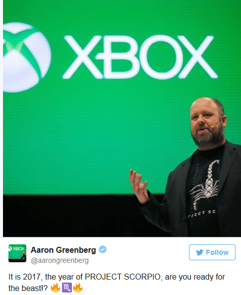 Xbox部門營銷主管Aaron Greenberg在他的新年首推上,宣布2017年是“天蝎座項目的一年”。