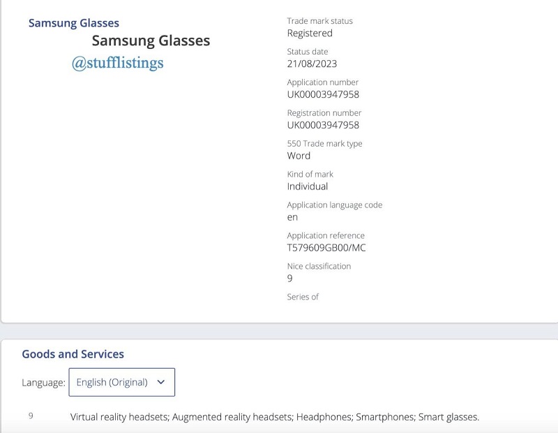 科技達(dá)人Mukul Sharma爆料,三星已為三星XR頭顯申請(qǐng)了商標(biāo)。