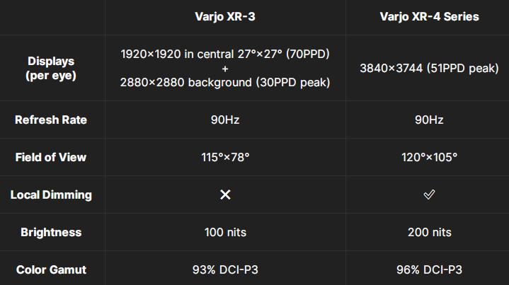 Varjo XR-4還配備了更大的鏡頭,垂直視野明顯更高,達到105°,而XR-3的垂直視野僅為 78°,水平視野也得到了改善,從115°提高到120°。