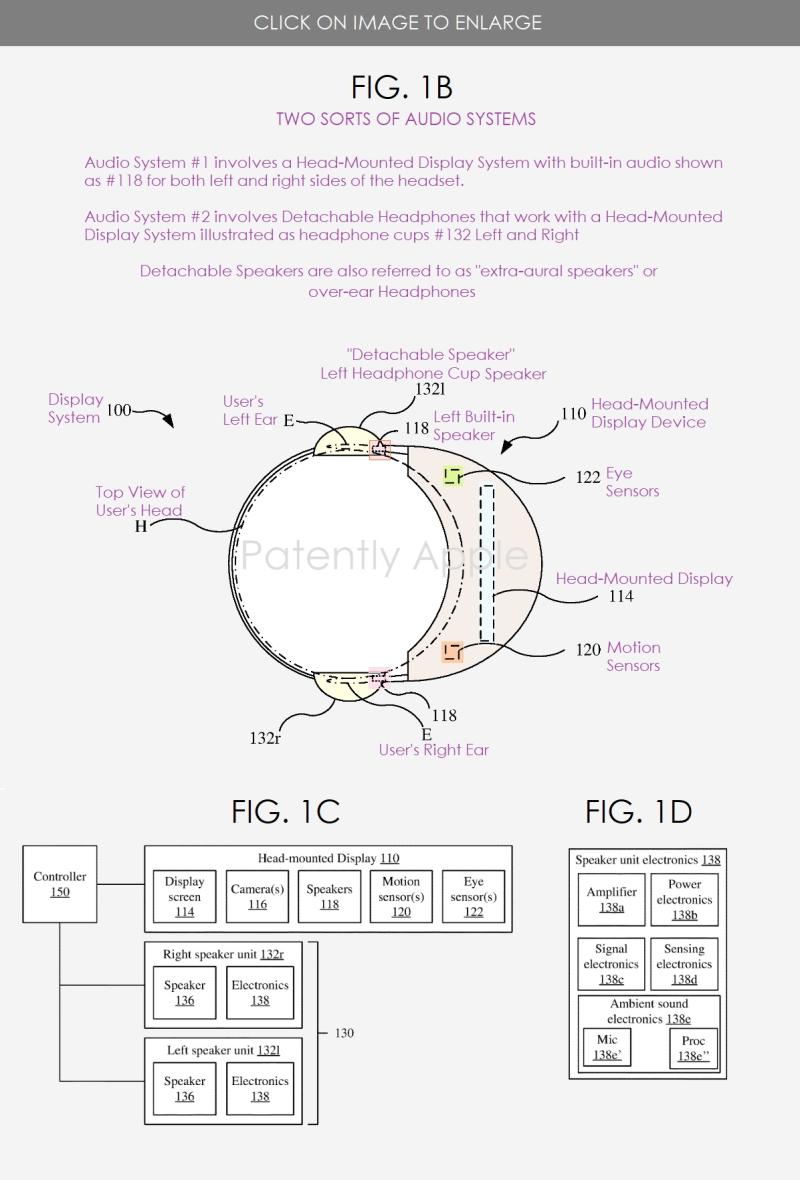 蘋果專利圖1B為顯示系統(tǒng)的俯視圖;圖1C為顯示系統(tǒng)示意圖;圖1D為顯示系統(tǒng)的可拆卸式揚(yáng)聲器單元的示意圖。